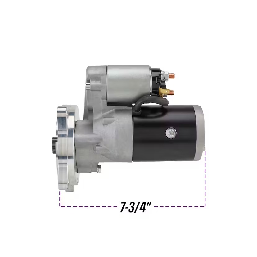 You will be thankful this gear reduction starter is easier to hold on to and weighs less! Cranking output is an amazing 1.9 horsepower thanks to the 1.4 kW motor with 3.75:1 gear reduction unit. The efficient mini starter motor combined with the gear reduction means your electrical system and battery does not have to work as hard to turn over your engine.