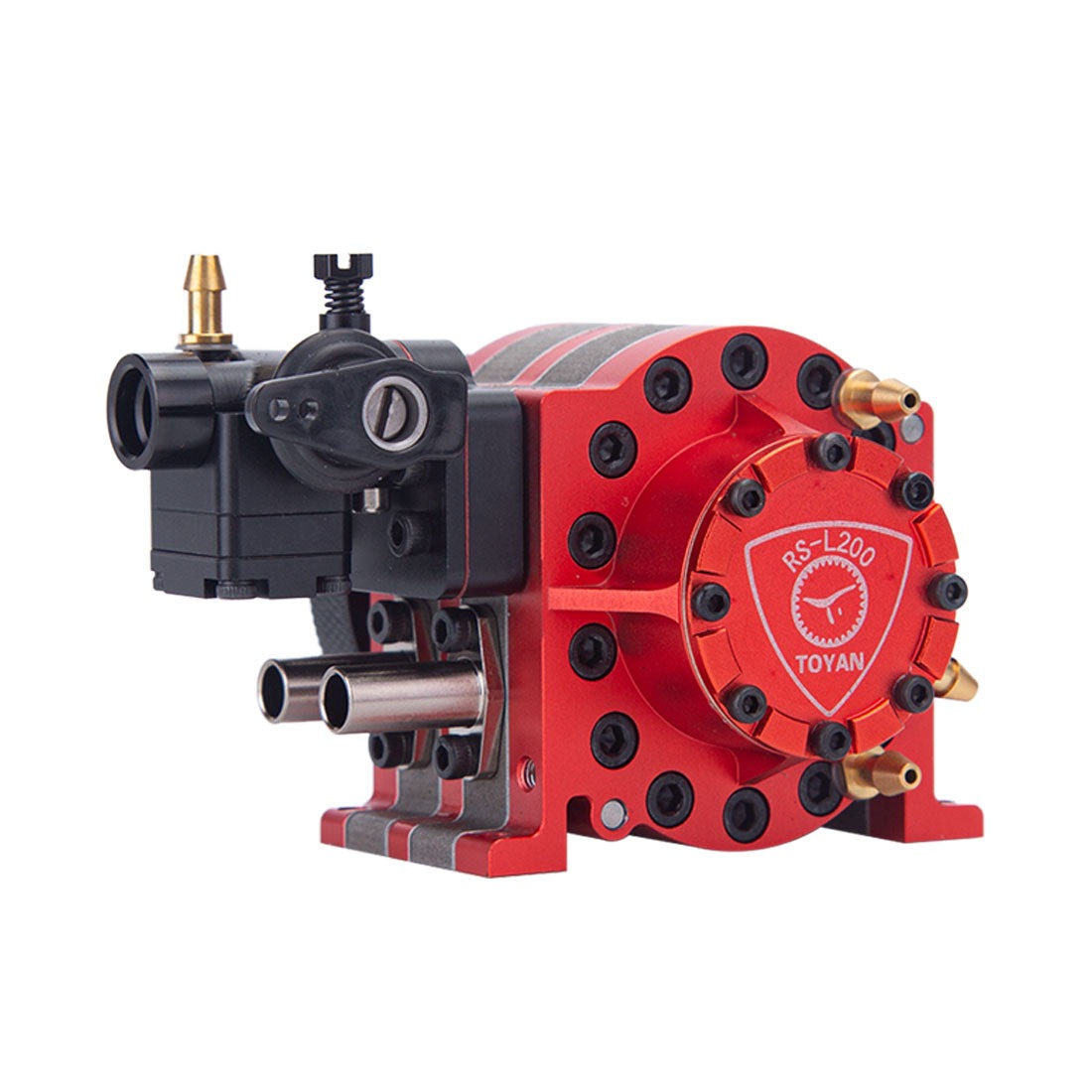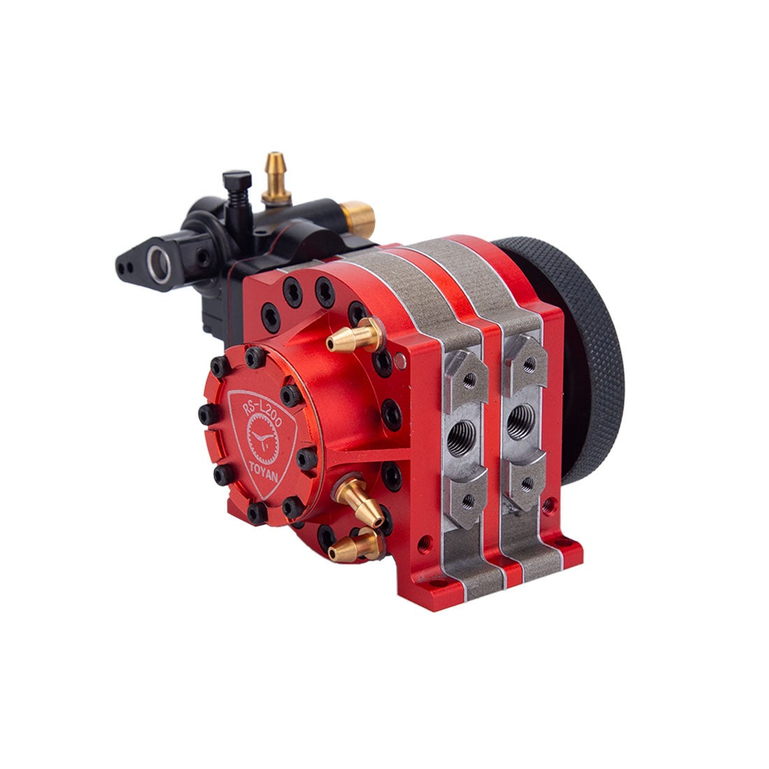 .The engine is an incredibly stable and powerful choice equipped with 30-teeth inner gear and 20-teeth outer gear in class 6 precision, steel flywheel and reinforced crankshaft for stunning wear resistance and excellent loading capacity. Toyan RS-L200 4.92cc 2 Rotor Rotary Engine Model Watercooling with Starter Kit Base Full Set